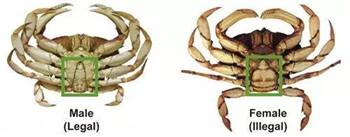 分清公母很重要,尖尖的是公蟹,圆圆的是母蟹。
