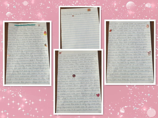 7岁的Sula今年暑假和妈妈一起参加了一周西雅图夏令营+一周黄石公园游览,摘黑莓、玩水枪、观老忠实火山喷泉,这是一段令她难忘的旅程。年仅7岁的孩子对文字的驾驭能力如此之强,实在让人赞叹!