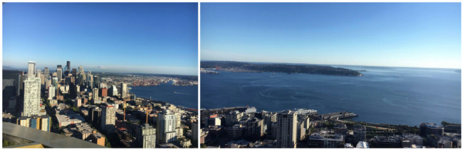 登顶太空针,俯瞰西雅图,海水如此湛蓝,远处的雷尼尔雪山清晰可见!