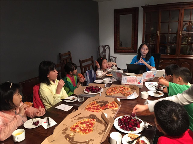 美伴深入浅出的营前教育对孩子们来说是一个很好的缓冲,能够提前了解到很多营地信息。我们叮嘱孩子们在营地中最重要的是安全,其次才是融入和学习。孩子们一边吃披萨一边认真地听着注意事项。
