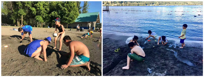 湖边挖沙野餐。