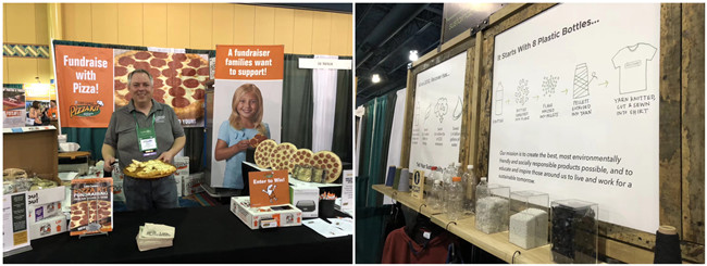 美国有各类专业机构为营地行业提供方方面面的支持。印象最深刻的是这家披萨公司为希望参加夏令营但家庭经济条件有限的孩子提供筹款机会,孩子请亲朋好友订购披萨,每订购一个可以挣6美金的夏令营学费。还有一家公司用回收的塑料瓶制作环保快干衣。