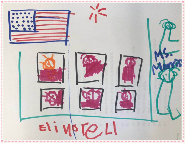 3岁的Elinore在洛杉矶参加了幼儿夏令营,她很喜欢她的老师。