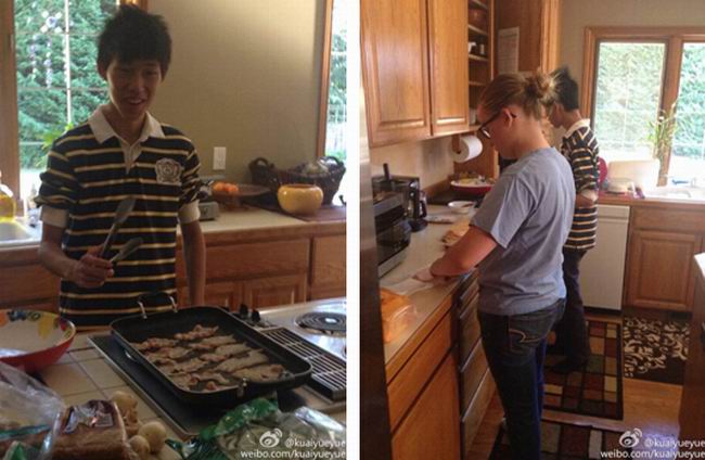 中西方家庭的生活理念相差很大。在中国,很多孩子只负责读书,其它都由家长包办,孩子们习惯了饭来张口,衣来伸手。在美国,家长很注重培养孩子的动手能力,每个孩子都有相应的家务分工。下图是Leven在寄宿家庭学作美式早餐。这可是Leven第一次下厨哦~