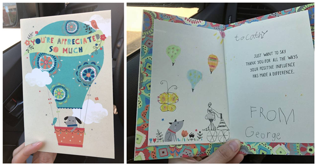 离开洛杉矶之前,孩子们还写了感谢卡给美伴的Cathy老师。