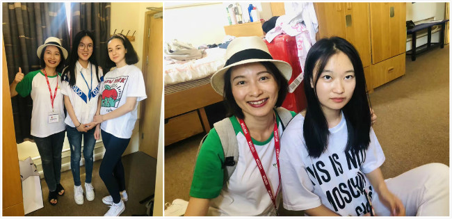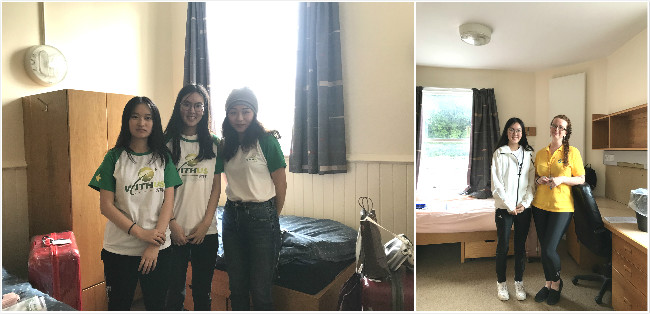 美伴老师随校车陪伴孩子们从机场到夏校。在大名鼎鼎的温彻斯特公学门口,已有夏校老师在等待,我们还是第一批到达的呢!在夏校老师简单介绍了宿舍情况之后,她们迫不及待地参观了校方分配的宿舍。Alina住双人间,室友来自俄罗斯,Helen住四人间,室友来自意大利和香港。在美伴老师入营培训之后,她们还和美伴及宿管老师合影留念。