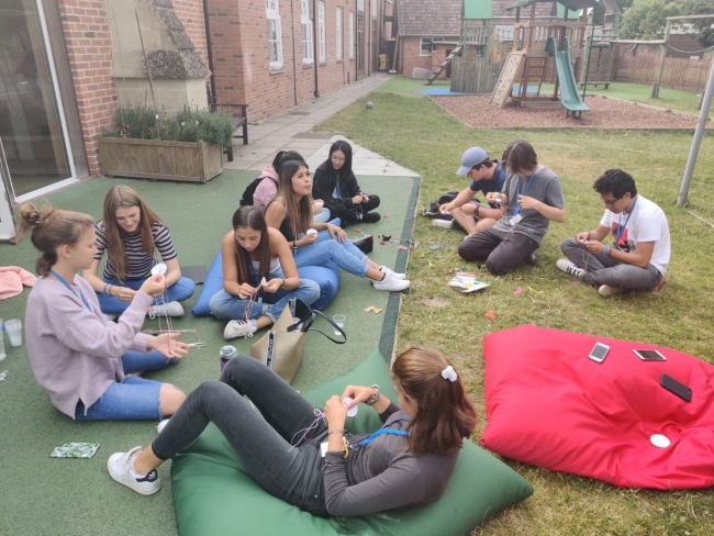 每天下午有丰富多彩的社团活动:排演戏剧《罗密欧与朱丽叶》、游泳、棒球、网球、编织友谊手环、鸡蛋降落伞、意面造塔等。