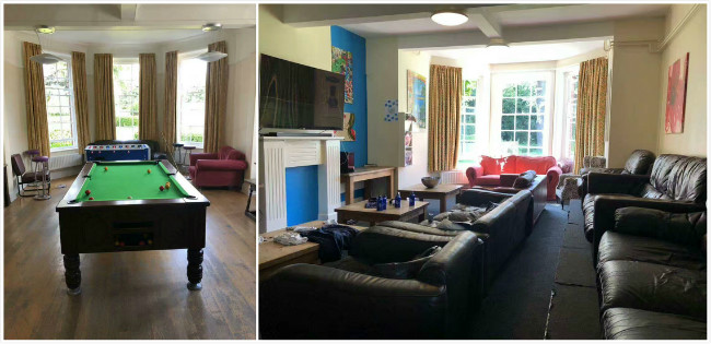 人性化的宿舍,每个房间1-5张床位,由校方指定分配来自不同国度的室友。每栋楼都有可亲可爱的宿管老师。男女生楼相距有两个足球场那么远!