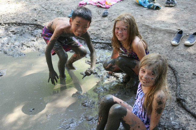 虽然弟弟是第一次体验海外寄宿营,可初生牛犊不怕虎,他勇于尝试一切新鲜事物,滑草、泥浴,一个赛一个的刺激!