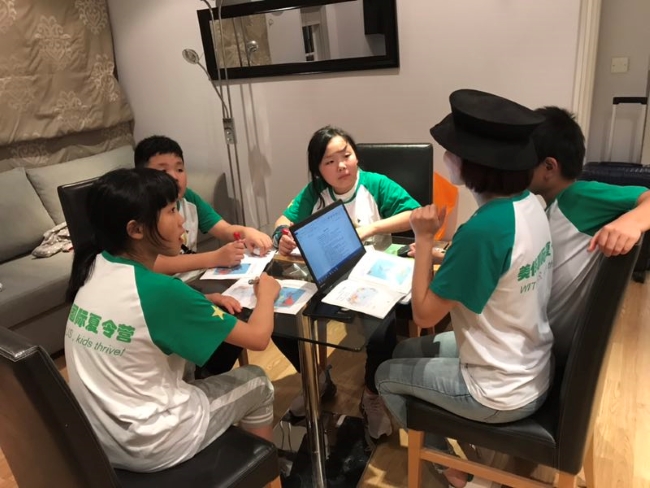 夏校的授课教师基本都是全日制小学的在职教师。教学团队每天都会开会讨论每个班级的教学情况。Bonnie的老师说她刚开始话不多,比较安静,渐渐的越来越活跃,上课也很积极。夏校老师对三个孩子的总体评价是,在学习积极性和课堂纪律方面都很棒,真是好样的!
