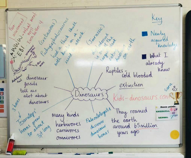 课堂板书,紫色词汇是孩子们本已掌握的,蓝色词汇是课堂上新学的。