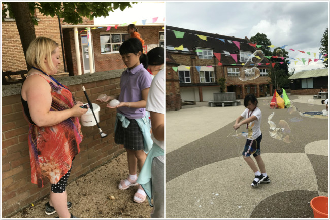 每周美伴老师都会去探校,为望眼欲穿的老父亲老母亲一解相思之苦,顺便还帮两个孩子完成了国内学校布置的小视频暑假作业。因为是低龄夏校,管理很严格,访校人员全程都有工作人员陪同,不可随意走动,对拍照也有严格规定。