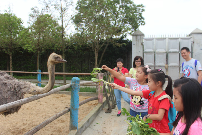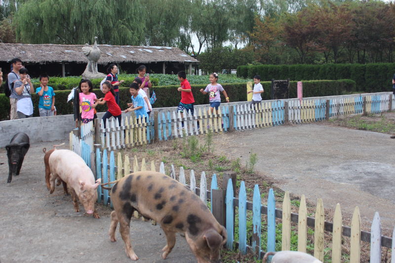 快乐的一天,少不了你们的笑语欢歌,无论是在大巴上,还是农庄里。先来看看有趣的动物表演,疯狂的小猪和小朋友一起赛跑,激烈火爆的山羊顶角,尽情的喂鸵鸟的孩子们,当然少不了释放能量的攀爬架。