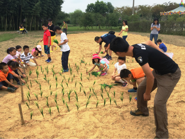 每天吃的米饭从哪来,体会过唐诗里面的“粒粒皆辛苦”么?在教练的指导下,小朋友们认真地学习插秧,别看这是在沙地里,可是真的很辛苦。弯着腰,倒着走,还要时刻注意摆摆正。