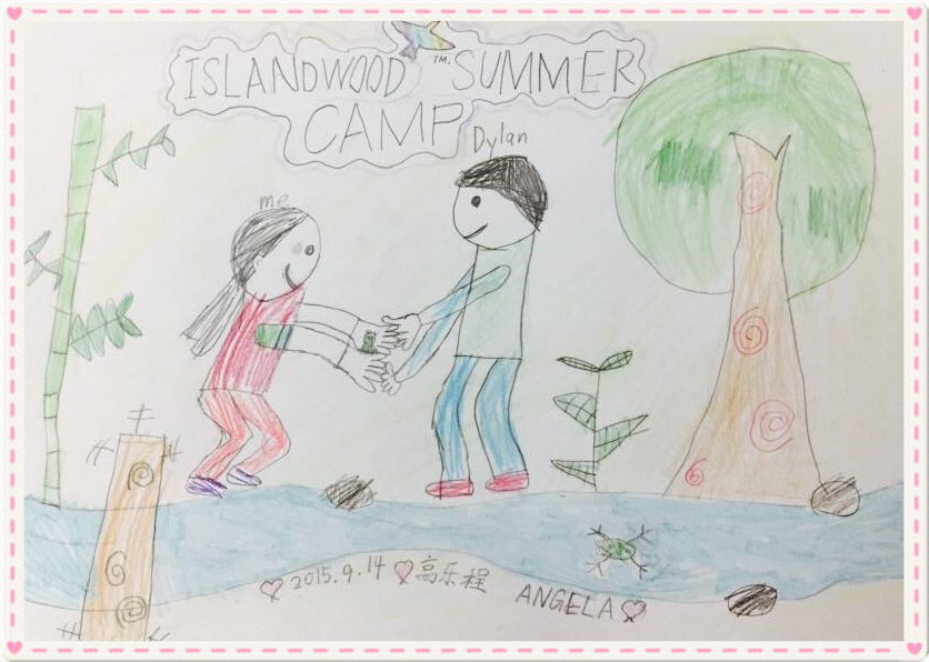 这是我在美国参加的最后一个夏令营,我非常喜欢这里的Dylan老师,他是一个阳光又快乐的大男孩,每天都带我们尽情地玩。有一天,他带我们去森林的小溪边捉青蛙,其实旁边还有很多小伙伴,很可惜我的纸不够大了,所以没有把他们画进来,那天我们还捉到了一条像小龙虾一样的鱼。我太喜欢这个夏令营啦,明年我还想来参加。
