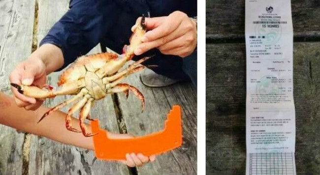 好环境也是靠好政策和好执行来维护的。根据规定,母蟹和小蟹都不能带走,捞起要放生,只有符合一定尺寸的公蟹才可以带回去,为此还配备了专门的量尺,大家也都自觉遵守。捞螃蟹还需要执照,哪怕一只也没有捞到,事后也要申报,以统计海里剩余螃蟹的数量。