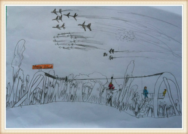 墨瑟岛非常美丽,那里像森林一样有许许多多的树。我最喜欢岛上的儿童乐园,尤其是超赞的滑道。看,天上还有飞机在演习,他们正在为飞行表演做准备。