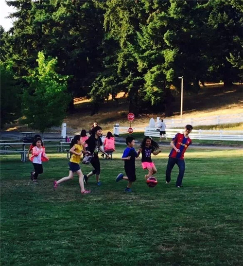 Angela除了喜欢白天的夏令营,也喜欢放学后和小伙伴们一起疯狂地玩耍。西雅图真是一个美丽的地方,公园多得玩好久都不重样。瞧,草地上大家自发地玩起夏令营学会的新游戏,玩腻了又去疯跑一通,一会儿又去灌木丛中摘起了黑莓,一会儿又去湖里开心地游一圈。