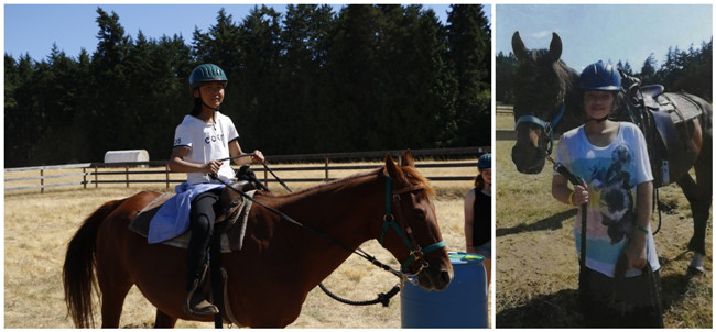两个姐姐,Grace和Chris第一周都是马术夏令营。看到她们英姿飒爽的照片,我也立刻想骑到马背上去驰聘一把呢。
