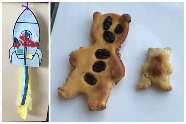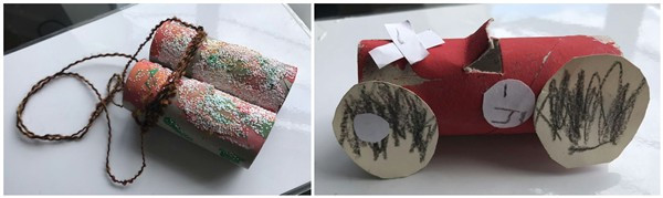 下图是孩子两周里的四个手工作品。