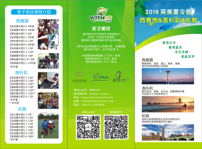 2018年暑假,美伴推出【回归自然】、【名校课堂】和【亲子旅居】三个系列的夏令营,既有学生单飞,又有亲子旅居,在西雅图、温哥华、洛杉矶、美东和英格兰都有多种选择。美伴首创海外亲子旅居学习度假模式,亲子夏令营均居住在优质社区带独立厨卫的酒店式公寓,白天孩子上本土夏令营,课后特色亲子活动,真正体会原汁原味的当地生活。寄宿夏令营也有传统户外和名校体验两大类,适合8岁以上独立性较强的学生。在正宗的英美夏令营和当地孩子互动,收获欢乐、自信和友谊!