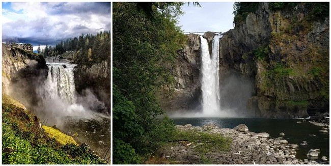 斯诺夸尔米瀑布是华盛顿州最受欢迎的景区之一,每年接待逾150万游客,距离西雅图市区只需要10分钟车程。公园占地12亩,瀑布落差80多米,气势磅礴,水汽弥漫,观景台上可以近距离、全景式欣赏瀑布,美剧《双峰镇》曾在这里取景。另外,北美最受欢迎的蜜月度假酒店赛丽诗酒店也位于此,更为斯诺夸尔米瀑布景区增加了浪漫的元素。乘着直升机从空中俯瞰,上千立方米的水在1秒之内奔腾而下,耳边被震耳欲聋的水声环绕,这种感受,是地面无法比拟的。