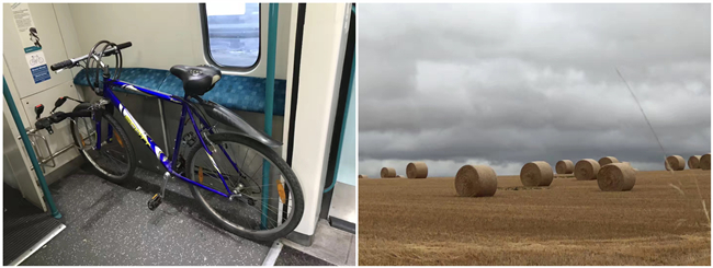 温彻斯特距离伦敦只有一小时车程。英国火车类似地铁,班次很多,不对号入座,人多时只能站着。也会根据票价区分慢车或快车。火车上还有自行车专座。沿途的风景。