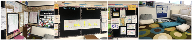 学校的教室布置都是由老师和学生们一起完成的,老师会将学生们的作业贴在墙上,展示本周的学习内容。