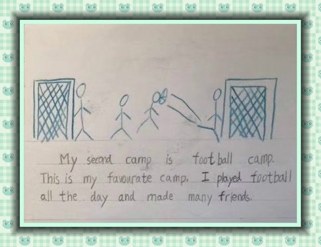 My second camp is football camp. This is my favorite camp. I played football all the day and made many friends.
