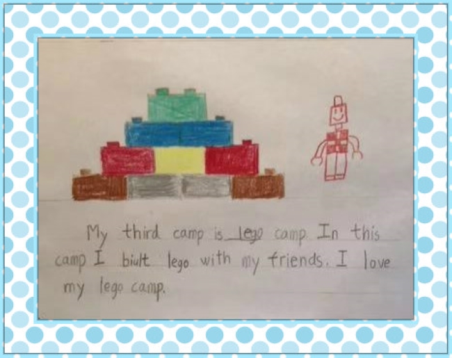 My third camp is Lego camp. In this camp I built Lego with my friends. I love my Lego camp.