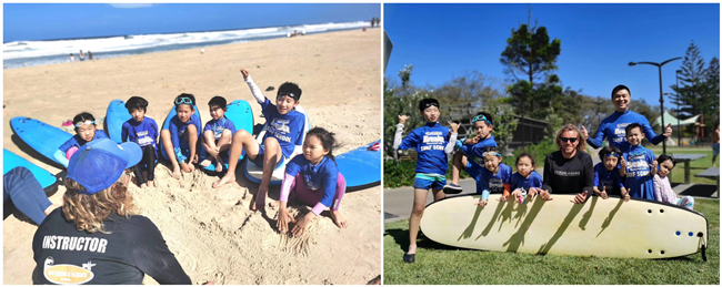 黄金海岸向来是冲浪者天堂,名不虚传!我们的营员都是第一次学习冲浪,一次次被浪冲翻,一次次爬起来继续,表现出很强的韧性和学习能力,让教练和老师赞不绝口。