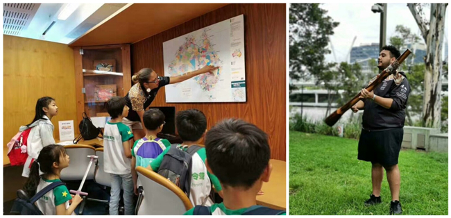 除了自然,还有人文。澳洲土著是澳大利亚历史人文不可或缺的重要部分。老师从土著人如何出现在澳洲大陆这个未解之谜,讲到土著人的生活方式和发明创造,到欧洲殖民者登陆,到“被盗走的一代”,当播放澳洲总理给全体土著正式道歉的视频时,孩子们一反平日的活跃,都静静地盯着屏幕,仿佛感受到了土著孩子曾经的苦难。美伴还特别安排了“土著文化之旅”,由真正的土著人做向导,结合美伴课程之前的知识背景,大人孩子都学到更多,一边赞叹土著艺术,一边感慨他们的创伤……