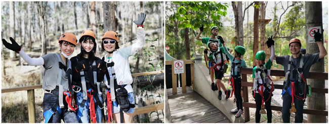 除了学,肯定少不了玩。美伴安排的树顶冒险项目,得到大小营员不分男女的一致追捧。营员现场学习如何上锁、解锁和转换安全防护装备,兴奋、紧张、开心,再克服内心的小恐惧。真的是超越自我,棒棒的!孩子们还跟着美伴老师挑战了Rock Pool Adventure。在布满大小岩石的水里溯溪而上,一个多小时的跋山涉水,绝对是对勇气和毅力的挑战!