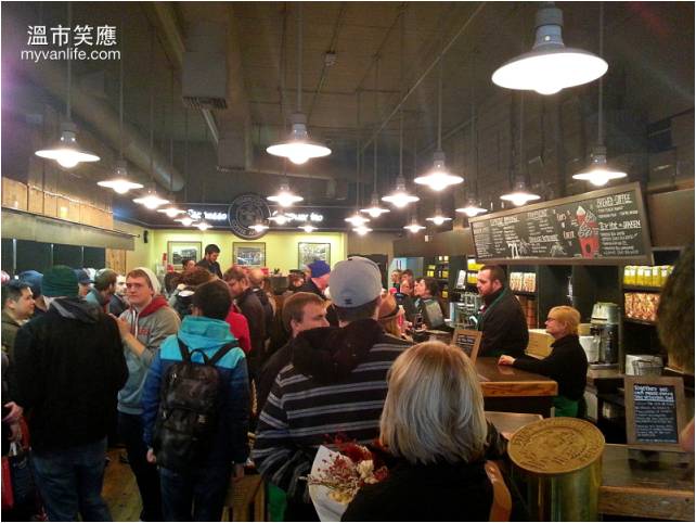 这家室内陈旧灰暗,与其说是咖啡馆,更像是杂货店,该是星巴克刻意保留当年原貌下的产物。店内摩肩擦踵的程度是世界上其他星巴克分店难以看到的……因此店门口永远有聪明的街头艺人现场弹唱卖艺,收入总是比其他地点丰厚些。