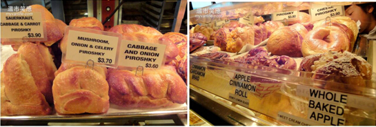 推荐美食:咸面包:Smoked Salmon Piroshky、Beef and Cheese Piroshky,甜面包:Apple-Cinnamon Roll……吃得到整片的苹果!