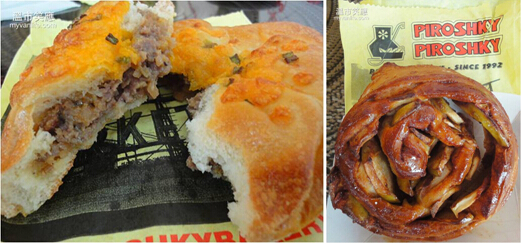 不要误会,我并没有打错字。这家俄式面包店的名字就是Pirosky 重复两次。Pirosky (一作Pirozhky) 是俄国面包的名称,将填充了各种不同内馅的面包经过煎或炸制而成。