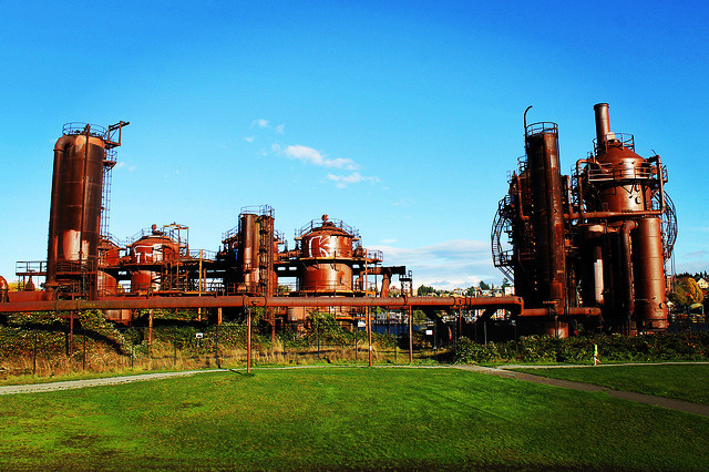 煤气厂公园是许多放风筝爱好者的天堂,也是奇特的地标建筑——煤气厂遗址。现在它是野餐圣地,更是儿童游乐场。煤气厂公园坐落于市区北部联合湖(Lake Union)上的半岛,经常会有帆船比赛。此外,这里经常会有一些怪诞的活动,比如身着戏服的剑术比赛或惹人非议的行为艺术。