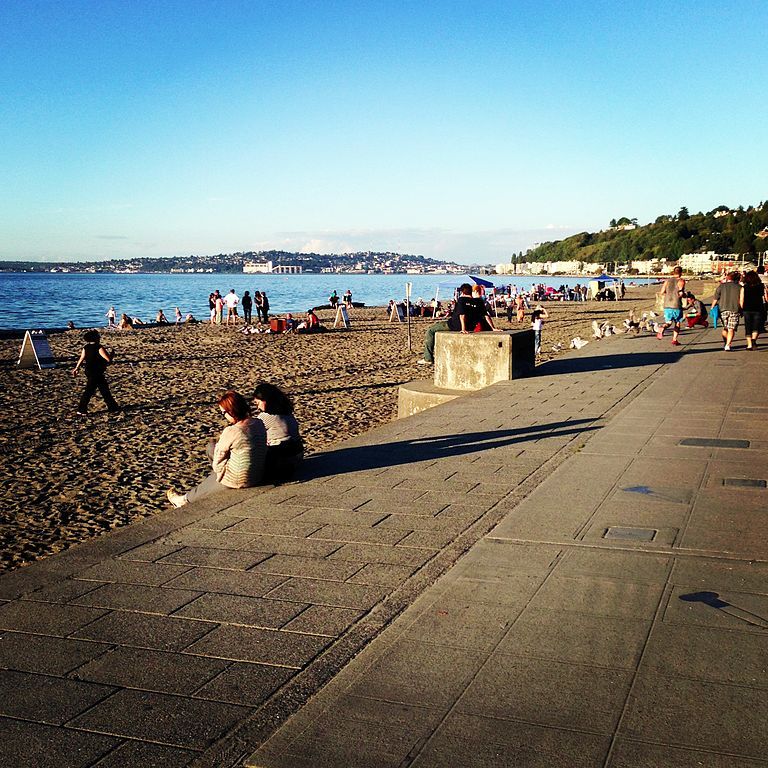 狭长的海滩把高耸的大楼和魅力非凡的小平房,从西雅图西部的水面一分为二。这个海滩常常被众人拿来与加州海滩相提并论。当然,如果天公作美,这个海滩与加州海滩确实很像。当阳光明媚的时候,打着排球的年轻人和舔着甜筒的小孩会占领整个海滩。可以花一整天,骑着单车,从旧金山的渡轮大厦一路向北,到阿尔基点灯塔(Alki Point Lighthouse)游览一番。一路上,沐浴着清新海风,看看旖旎群岛,还有那宽阔无垠的地平线,美得令人窒息。永远不用担心挨饿,这里的餐馆(尤其特别多炸鱼薯条、咖啡和冰淇淋店)多数面朝大海,可以享受视觉和味觉的双重盛宴。