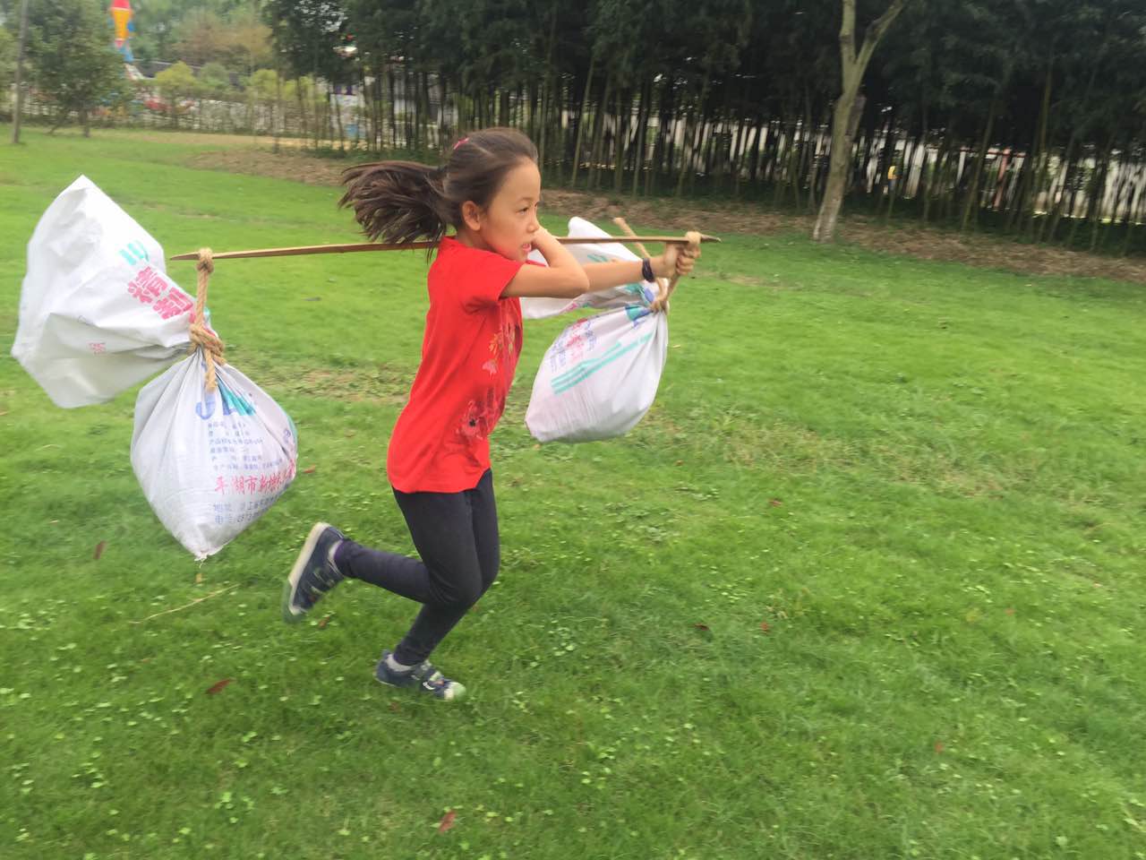 农田收割了,大家接力来运丰收粮。扛起小扁担,为组加油为组争光。