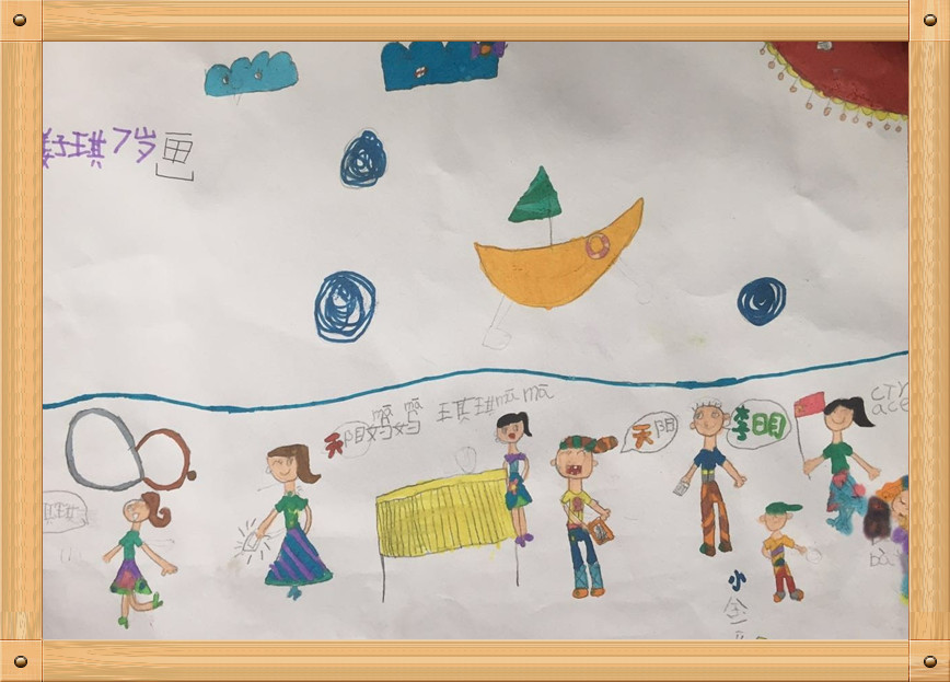 美丽的西雅图有很多有特色的公园,每天下午跟伙伴们在公园的游戏都是最值得期待的。我画的是其中的一天,大海里有人在玩帆船,陆地上我们在玩攀爬架,妈妈们在旁边给我们加油,非常难忘和开心的一天。