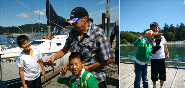 周末,跟美伴的小伙伴们一起来到美加边境的欺骗海峡捞螃蟹,天太蓝,景太美。老外真会享受生活,自家配小快艇海钓。我们收获不错,看着大个的珍宝蟹,孩子们好开心。