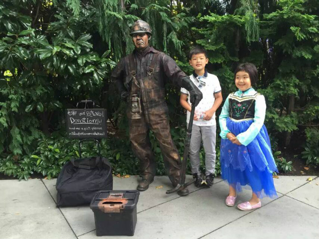 孩子们与矿工的合影,原本静止的矿工突然动了一下,吓我一跳,原来不是塑像是真人!