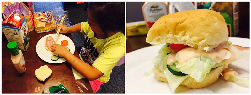 这一天的户外营要去海边,Angela早上起来给自己准备lunch box,包括一个自制汉堡、酸奶和黄桃。营养搭配得当,色香味俱全!