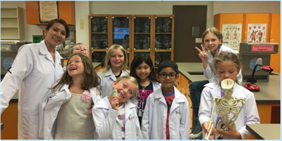连续三年被评为地区最佳科学营。和生物学博士一起共同研究人体结构、史前动物、昆虫及微生物,甚至一起装扮成福尔摩斯进行探案。观察显微镜下的微生物,解剖各种动物。